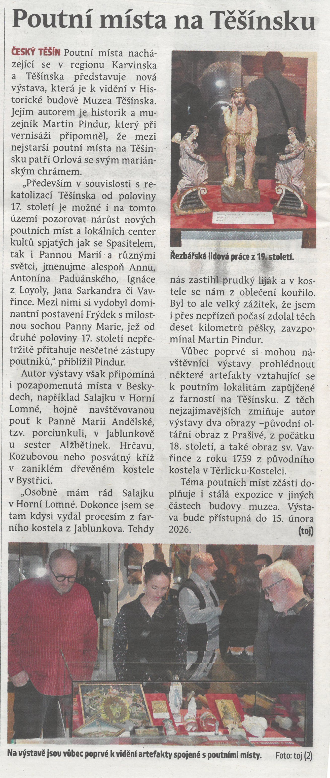 - Výstava přibližuje poutní místa Těšínska, MF Dnes, 22. 10. 2025
